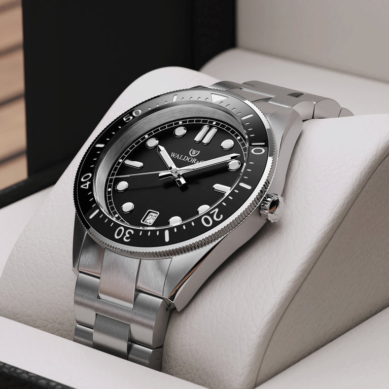 Packaging: Black leather box with certificate and manual